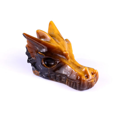 Tiger Iron Eye Hand Carved Crystal Dragon Skull Sculpture – Healing Stone Figurine