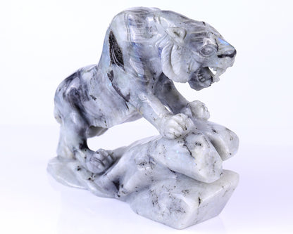 10.2" Labradorite Hand Carved Crystal Tiger Sculpture