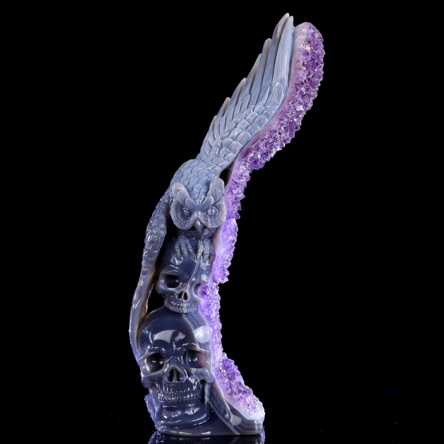 Amethyst is known as a stone of peace, clarity, and spiritual protection, while Agate provides balance, grounding, and stability. Together, they form a sculpture that not only serves as an artistic display but also as a healing stone companion, perfect for meditation spaces, home décor, or crystal collections.