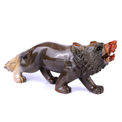 Colorful Jasper Hand Carved Crystal Wolf Sculpture – Healing Stone Figurine