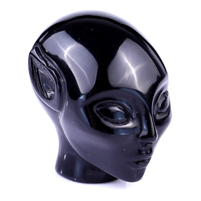 This captivating hand-carved Black Obsidian sculpture depicts a mystical elf alien, blending fantasy art with the timeless beauty of natural gemstone. Each piece is skillfully shaped and polished by artisans to reveal the deep, mirror-like black surface and smooth finish unique to 100% natural Black Obsidian.