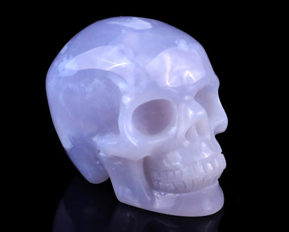 Blue Chalcedony Hand Carved Crystal Skull Sculpture – Healing Stone Collectible