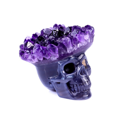 Each piece is one-of-a-kind, with variations in crystal formations, colors, and textures that ensure your Amethyst Druse Agate skull sculpture is a unique masterpiece of nature and art.