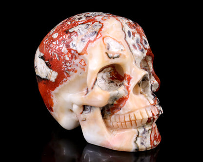 Coin Agate Hand Carved Crystal Realistic Skull Sculpture – Healing Stone Figurine
