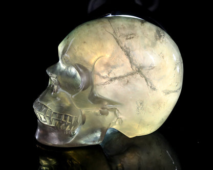 Discover the exquisite beauty of our Hand-Carved Fluorite Skull, a stunning piece that blends natural elegance with artisanal craftsmanship. This unique crystal sculpture is meticulously carved from premium fluorite, showcasing the stone’s inherent charm through its vibrant natural colors and captivating translucency.
