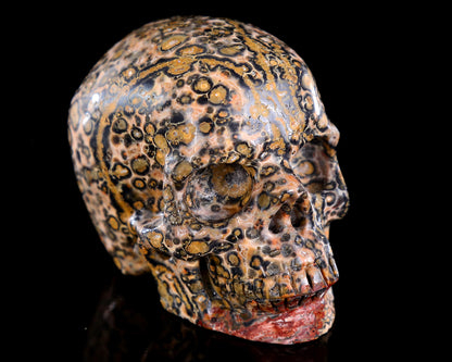 Honored as the "Shaman's Stone," Leopard Skin Jasper is revered for its wild, animalistic patterns and primal earth energy. This striking skull features dramatic spots in rich ochres, deep browns, and creamy whites - resembling a sacred leopard pelt frozen in stone. Each piece showcases unique orbicular markings that create a hypnotic 3D effect, with some specimens revealing golden pyrite "flecks" like sunlight on savanna grass.