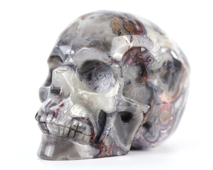 Celebrated as the "Stone of Fiery Harmony," Red Crazy Lace Agate captivates with its vibrant crimson spirals and golden lace patterns that resemble dancing flames. Each hand-carved skull showcases the stone's signature swirling bands in mesmerizing 3D depth, where fiery reds blend with sunset oranges and delicate cream veining - no two patterns ever alike.