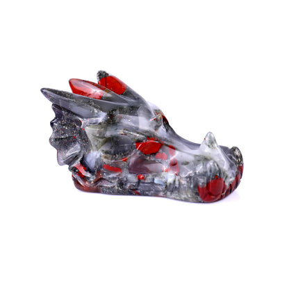 Please Note: Due to the use of natural African Bloodstone, each dragon skull will have unique variations in color and pattern, ensuring every piece is truly one-of-a-kind while maintaining exceptional craftsmanship.