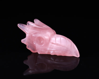 Rose Quartz Hand Carved Crystal Phoenix Skull Sculpture – Healing Stone Figurine
