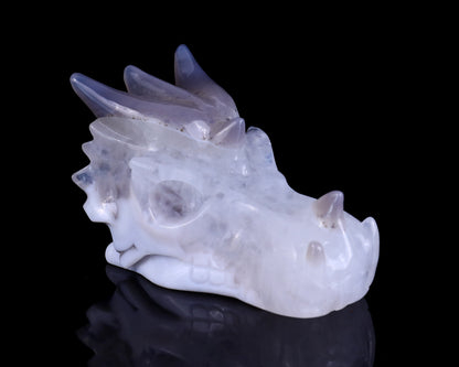 Geode Agate Hand Carved Crystal Dragon Skull Sculpture – Healing Stone Figurine