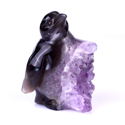 Amethyst Druse Agate Hand Carved Crystal Animal Sculpture – Healing Stone Figurine