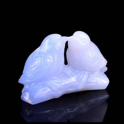 This exquisite animal sculpture is beautifully hand-carved from 100% natural Blue Chalcedony, a soothing gemstone known for its calming and nurturing energies. Blue Chalcedony is often associated with promoting inner peace, emotional balance, and clear communication, making it a powerful healing stone as well as a stunning piece of décor.