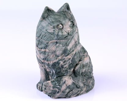 4.1" Jiulong Jade Hand Carved Crystal Persian Cat Sculpture