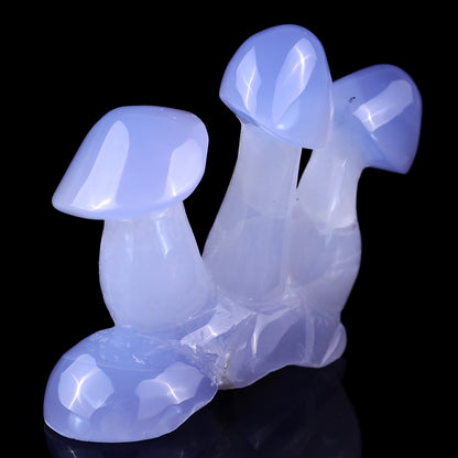 This charming mushroom sculpture is hand-carved from 100% natural Blue Chalcedony, a soothing gemstone known for its calming energy, gentle blue translucence, and nurturing vibrations. Blue Chalcedony is associated with the throat chakra, encouraging emotional balance, stress relief, and clear communication.