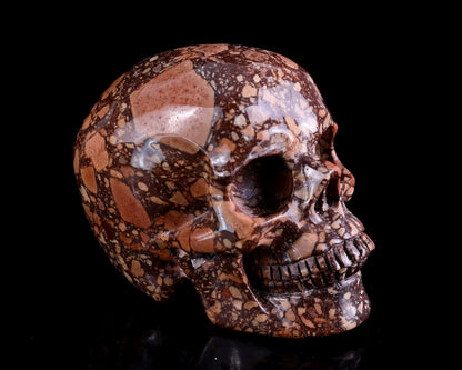 Carved in a realistic skull design, it represents wisdom, transformation, and spiritual awareness, while the rich brown and cream patterns of Coffee Stone highlight the stone’s natural beauty. Its polished finish enhances depth and texture, giving each skull a unique and captivating appearance.