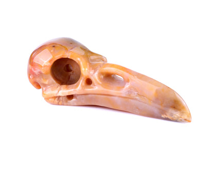 Chalcedony Hand Carved Crystal Raven Skull Sculpture – Healing Stone Figurine