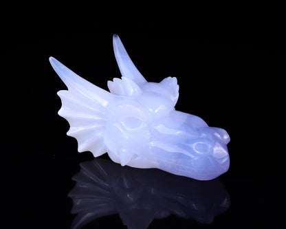4.9" Blue Chalcedony Hand Carved Crystal Dragon Skull Sculpture