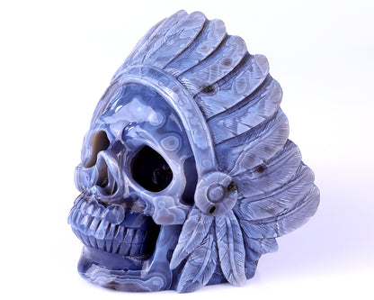 This 5.1-inch Amethyst Geode Agate Skull is a striking hand-carved crystal sculpture, expertly crafted from 100% natural Amethyst Geode Agate. Featuring a captivating blend of sparkling purple geode crystals and smooth agate patterns, this unique piece perfectly combines natural beauty with skilled artistry.