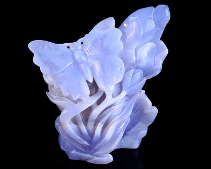 5.2" Blue Crazy Lace Agate Hand Carved Crystal Lotus and Butterfly Sculpture