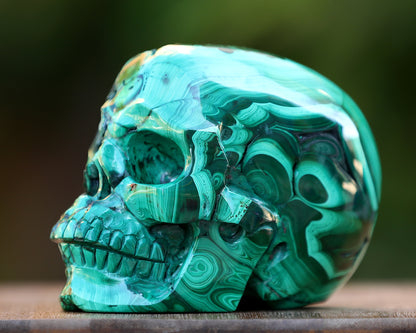 Please Note: Each skull is hand-carved from natural malachite, so patterns, banding, and shades of green will vary, ensuring every piece is unique yet equal in quality.
