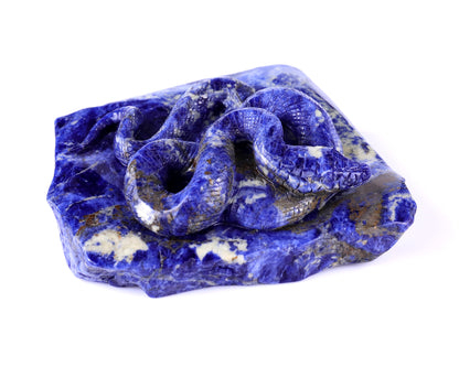 This finely detailed animal sculpture is intricately hand-carved from 100% natural Sodalite, a gemstone admired for its deep royal blue hues with natural white veining. Known as a stone of truth, clarity, and intuition, Sodalite is believed to calm the mind, enhance communication, and promote emotional balance.