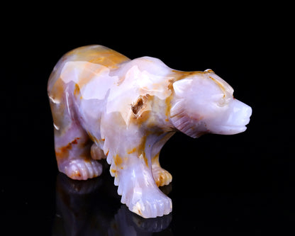 6.3" Chalcedony Hand Carved Crystal Polar Bear Sculpture