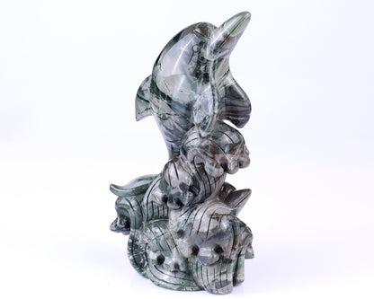 This elegant animal sculpture is intricately hand-carved from 100% natural Jiulong Jade, a gemstone admired for its smooth texture, rich green tones, and powerful metaphysical energy. Jiulong Jade is traditionally associated with protection, prosperity, and harmony, making this sculpture not only a stunning work of art but also a meaningful healing crystal.