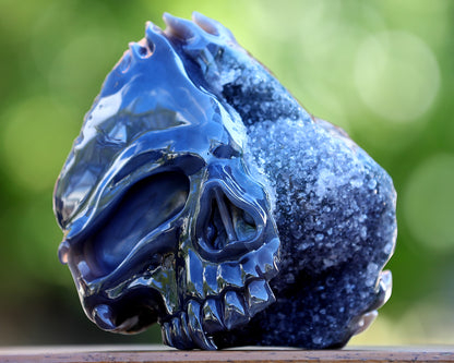 Each piece is one-of-a-kind, with variations in crystal formations, colors, and textures that ensure your Amethyst Druse Agate skull sculpture is a unique masterpiece of nature and art.