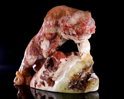 7.6" Chalcedony Tiger on Geode Hand Carved Crystal Sculpture