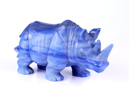 8.1" Blue Aventurine Hand Carved Crystal Rhinoceros Sculpture