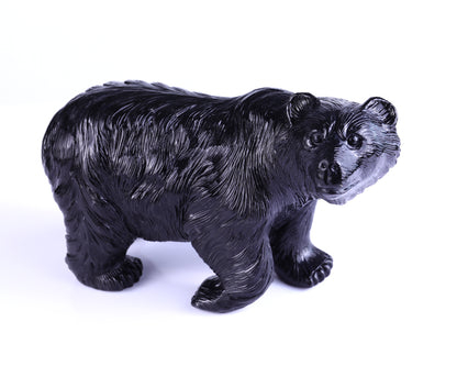 Black Stone Hand Carved Crystal Realistic Polar Bear Sculpture – Protective Healing Stone Figurine