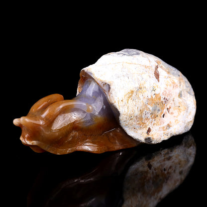 8.7" Chalcedony Hand Carved Crystal Snail Sculpture