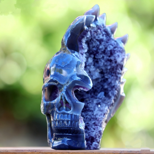 Each piece is one-of-a-kind, with variations in crystal formations, colors, and textures that ensure your Amethyst Druse Agate skull sculpture is a unique masterpiece of nature and art.