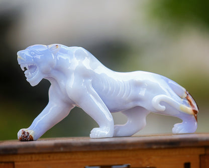 This exquisite animal sculpture is beautifully hand-carved from 100% natural Blue Chalcedony, a soothing gemstone known for its calming and nurturing energies. Blue Chalcedony is often associated with promoting inner peace, emotional balance, and clear communication, making it a powerful healing stone as well as a stunning piece of décor.