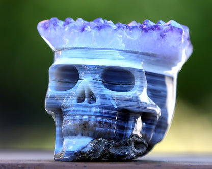 6.7" Amethyst Druse Agate Skull – Hand Carved Crystal & Mineral Specimen Sculpture for Collectors, Healing, and Home Décor