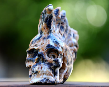 Unique 7.9" Geode Agate Crystal Skull – Hand Carved Natural Gemstone Geode Sculpture