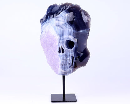 Unique 9.8" Amethyst Geode Agate Skull – Hand Carved Natural Crystal Geode Sculpture for Energy Healing, Meditation & Luxurious Display